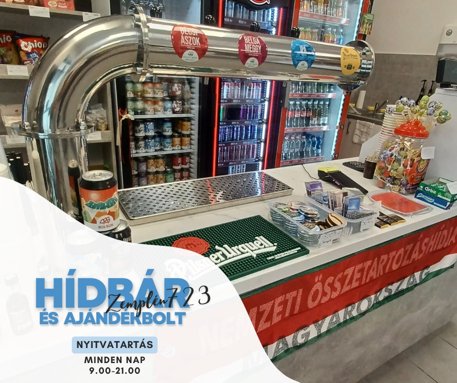Egyedi ajándéktárgyak megvásárolhatóak a Hídbár ajándékboltjában.